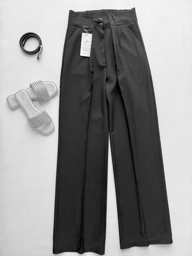 شلوار گاباردین مشکی زنانه مدل نیم بگ