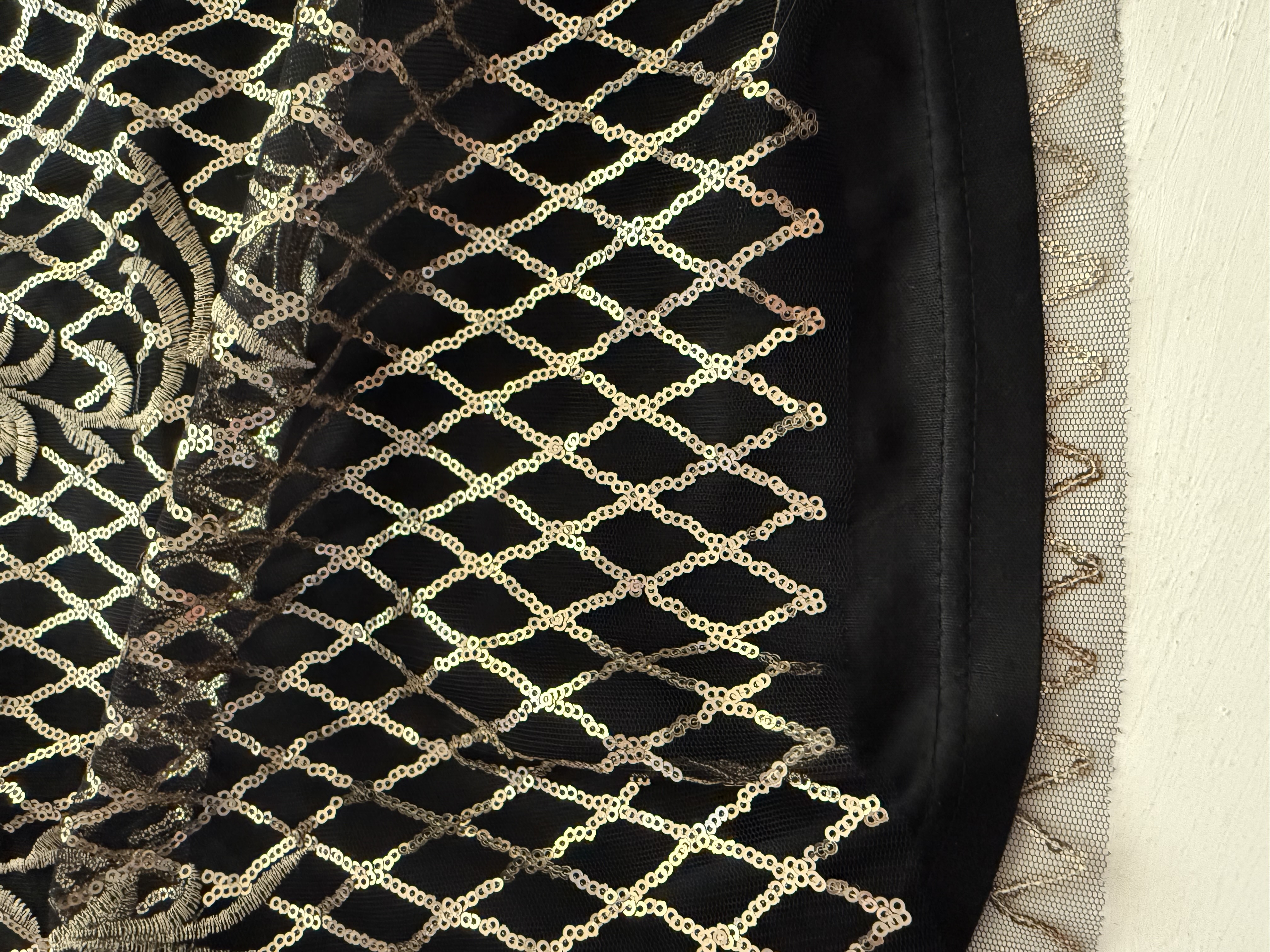 جنس پارچه: تور کش پولکی + آستر مشکی