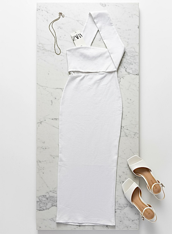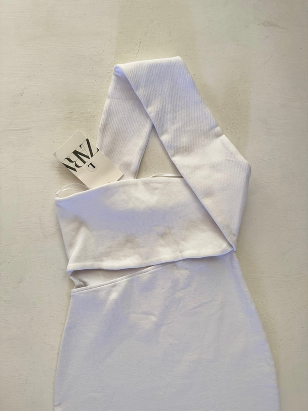 پیراهن بلند کشی زنانه برند Zara رنگ سفید سایز ۳۸ تا ۴۲