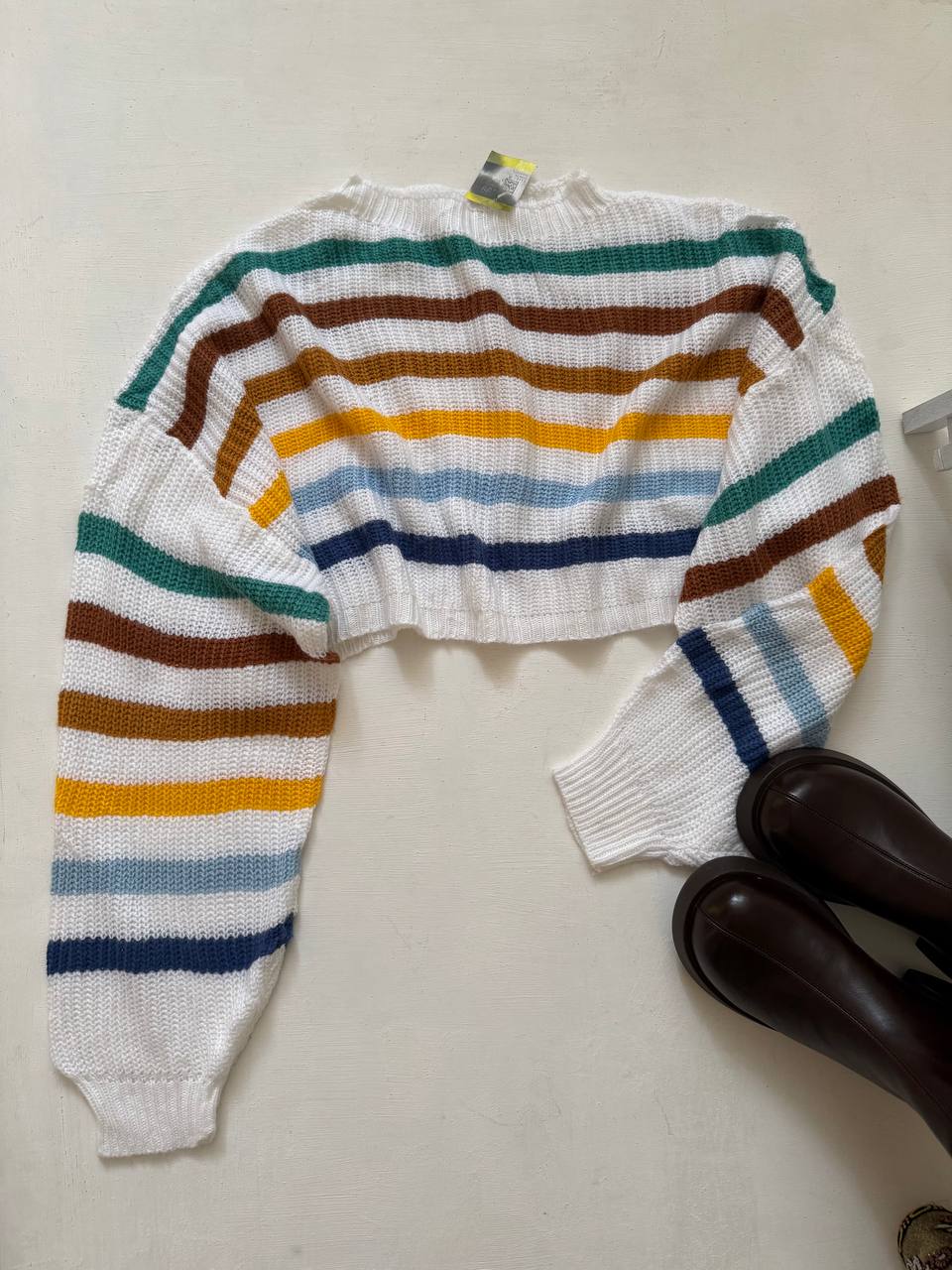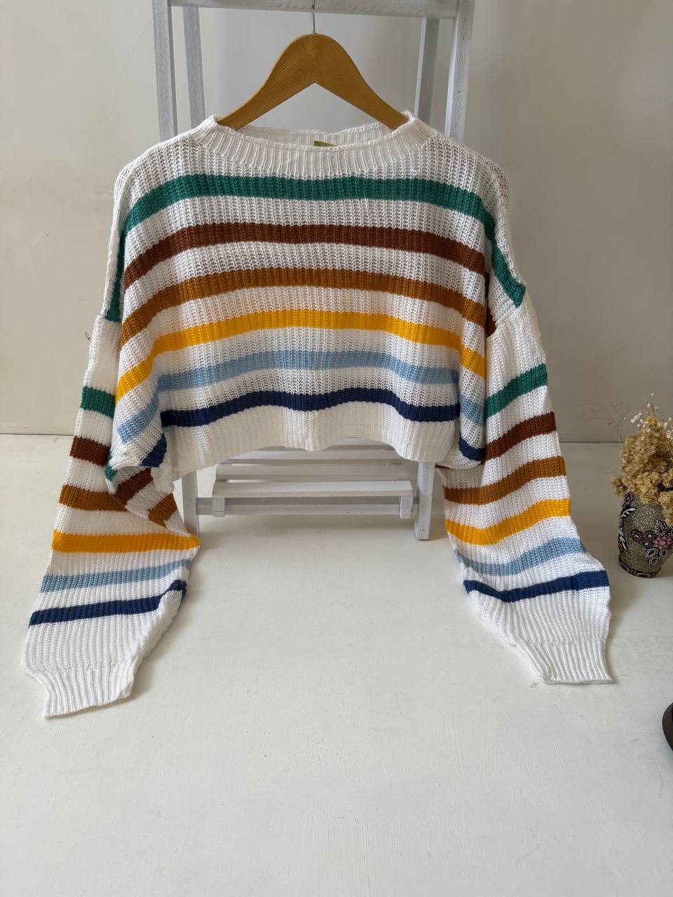 این کراپ بافت با رنگبندی چندرنگ جذاب، به راحتی با شلوار، دامن یا لگینگ ست میشود و برای استایلهای کژوال، اسپرت و روزمره ایدهآل است. پارچه با کیفیت و لطیف، حس نرمی و راحتی روی پوست ایجاد میکند و دوام بالا تضمینکننده استفاده طولانیمدت است.