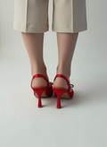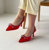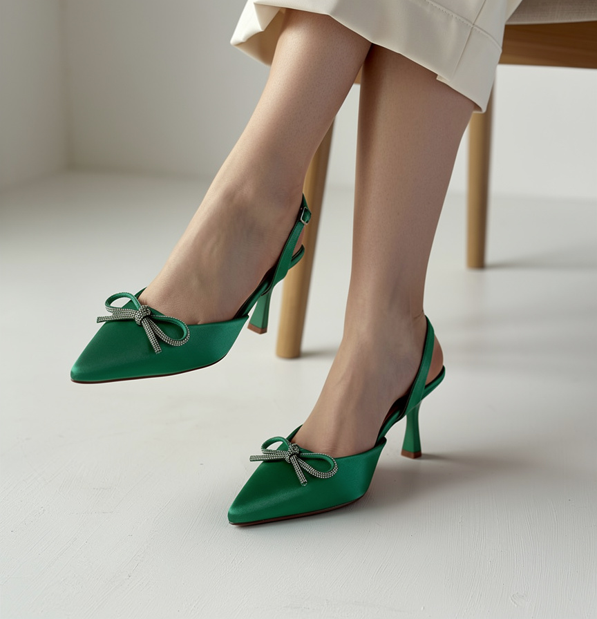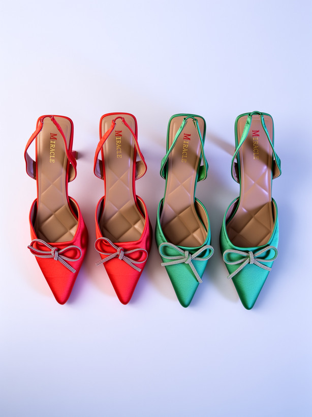 کفش مجلسی زنانه برند اماراتی Miracle رویه ساتن پاشنه 10 سانت رنگ سبز و قرمز