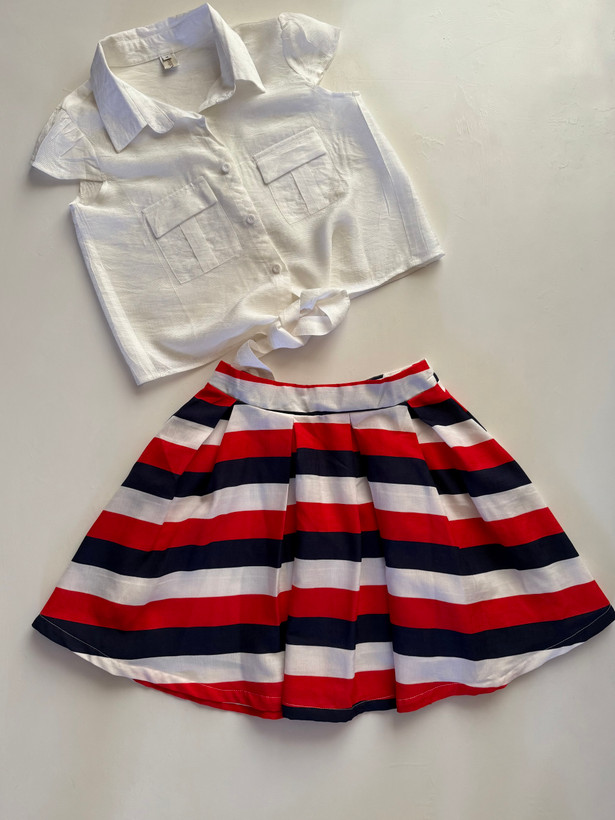 دور کمرکاربنی تیره؛ کشی / سفید ؛ ۷۴_۷۶ /سفید گلدار ؛ پشت کش / راه راه؛ ۶۶ / قرمز ؛۶۶
