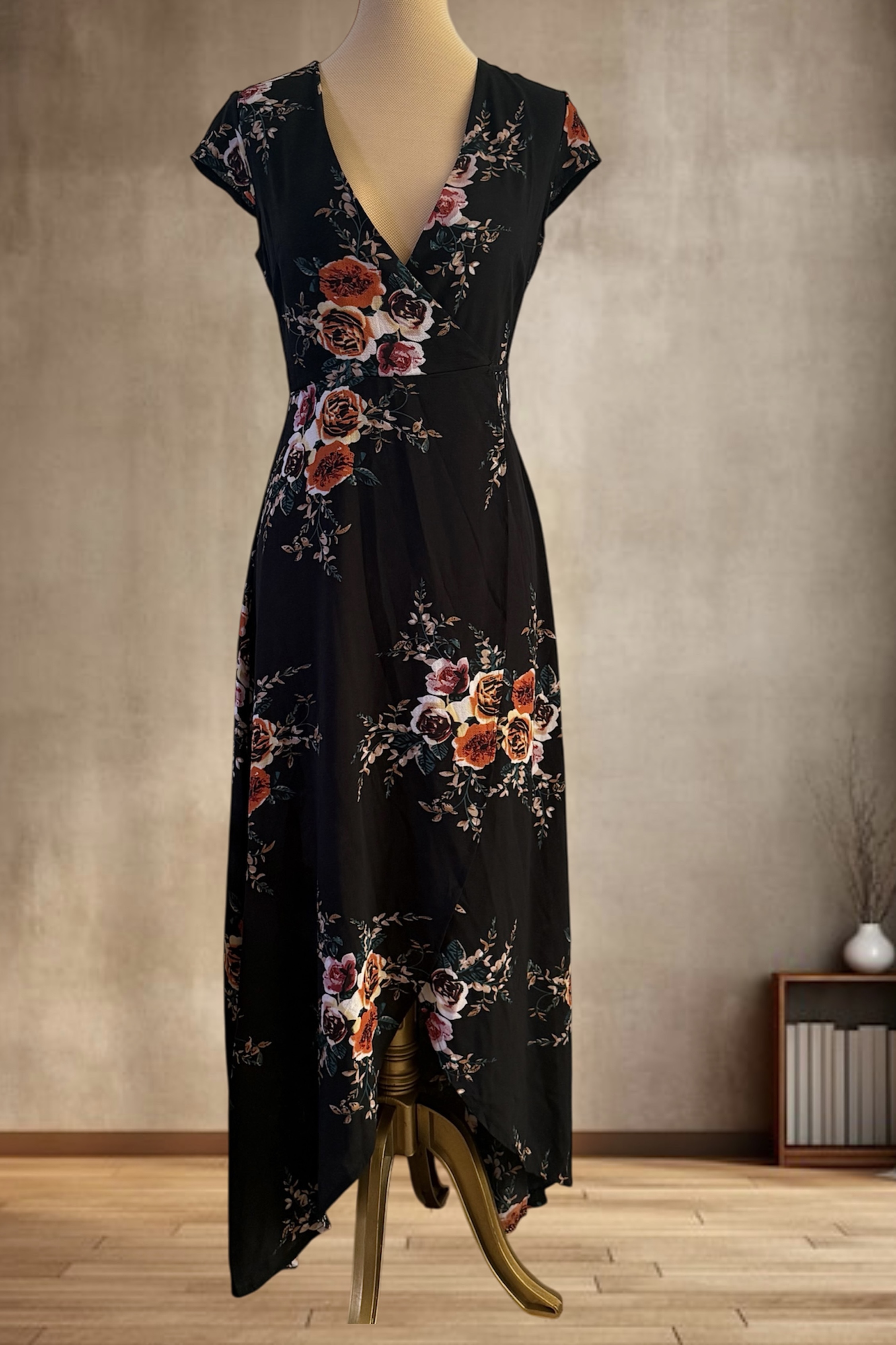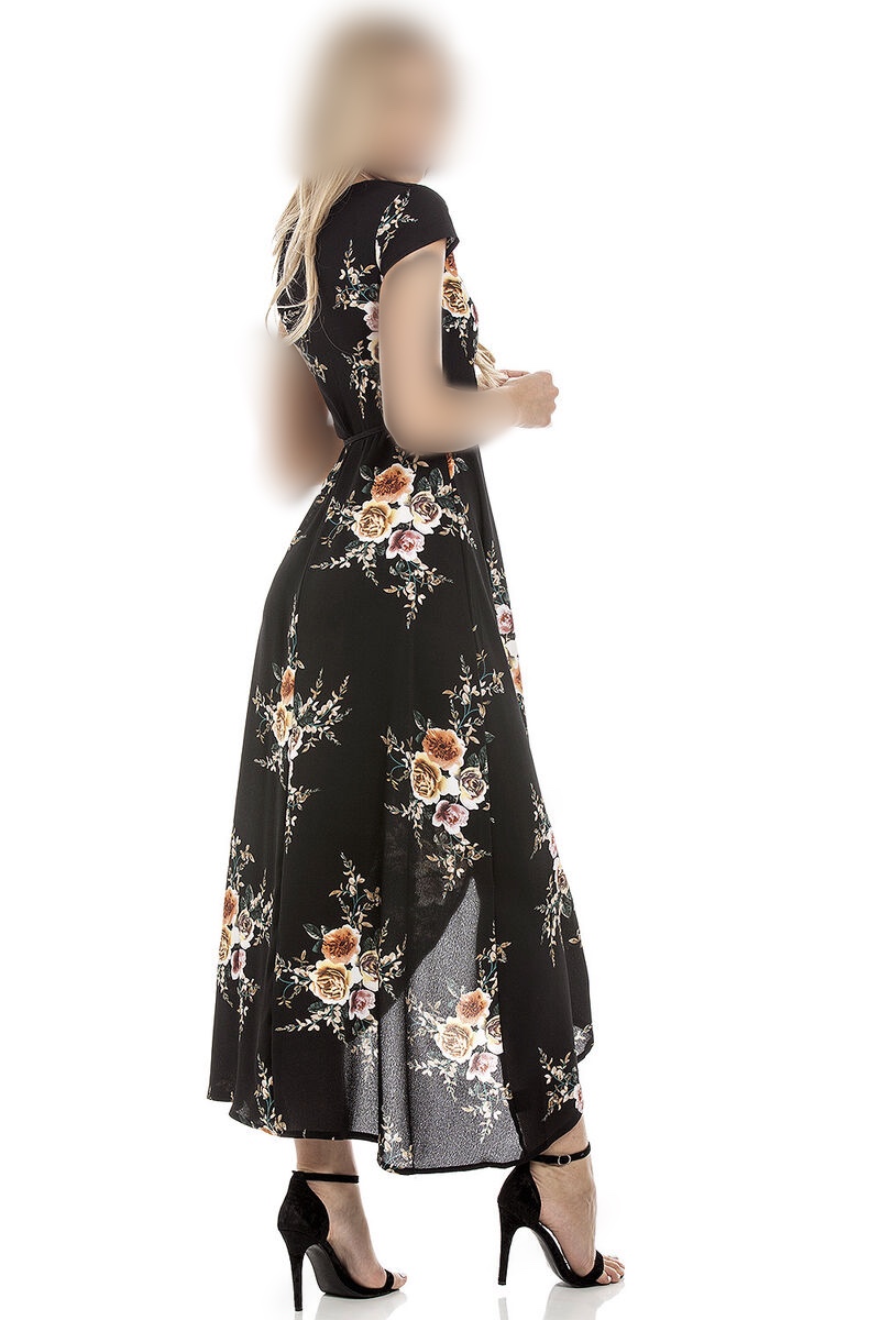 پیراهن بلند زنانه برند liva girl زمینه مشکی گلدار سایز ۳۸/۴۰ ( جلو باز )