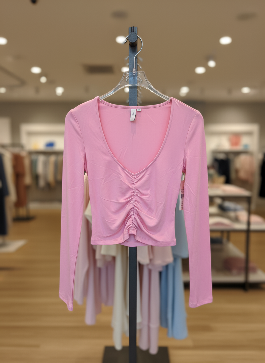 بلوز کراپ صورتی باربی برند Nelly مدل جلو چین کشی