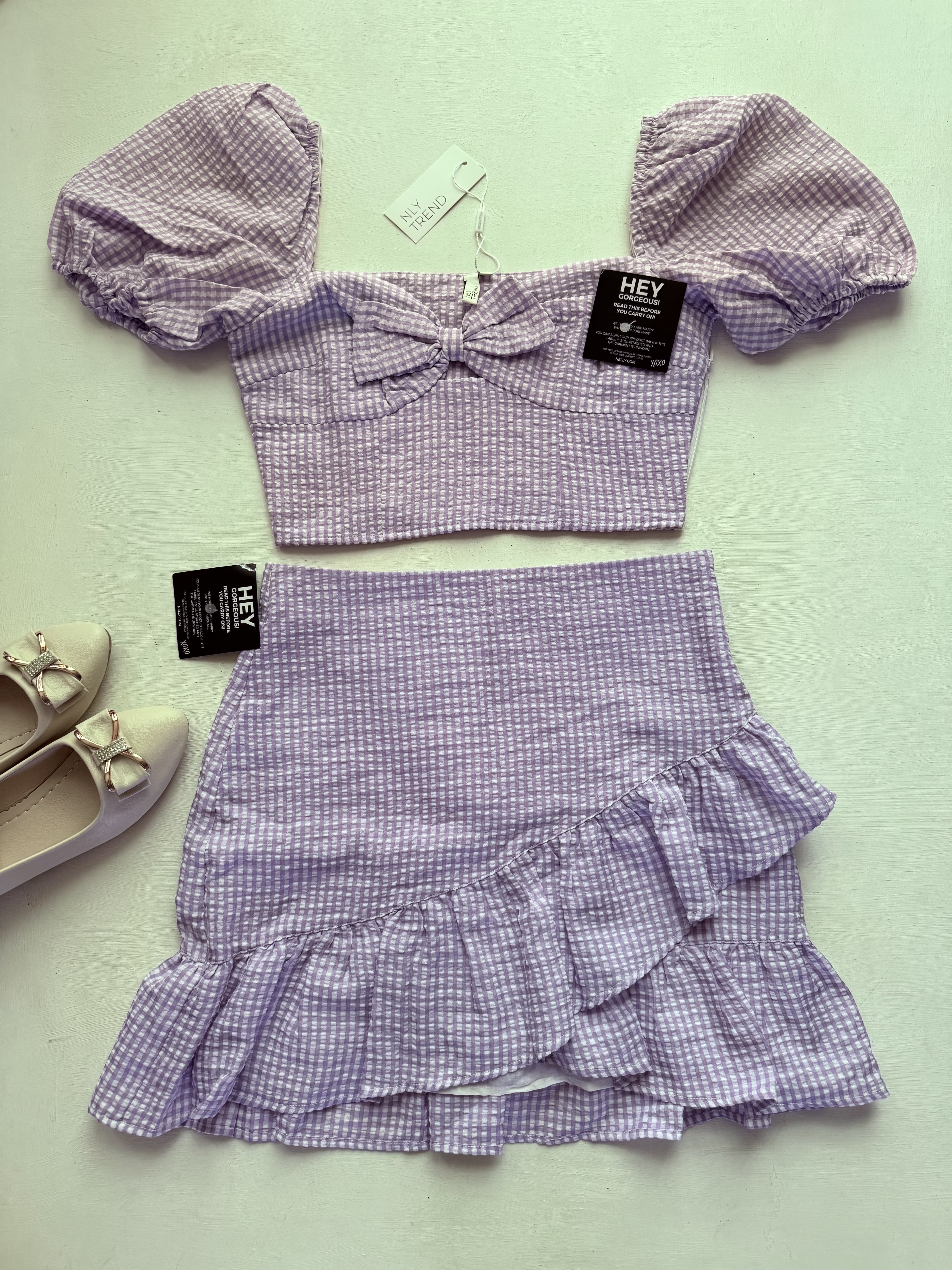 ست کراپ و دامن دخترانه برند Nelly رنگ یاسی